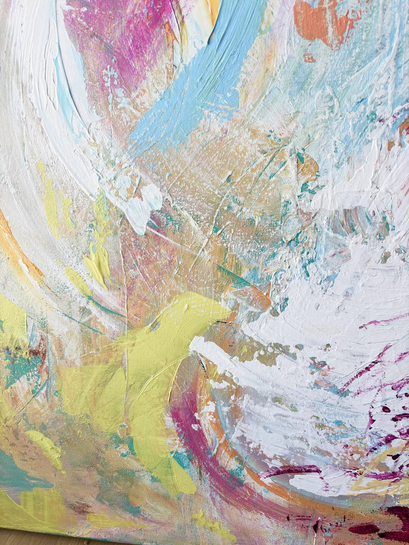 Each painting begins as an exploration — a conversation between movement, texture, and colour that evolves in the moment. Guided more by feeling than by plan, Sophie allows the process to lead, building layers that capture spontaneity and rhythm.