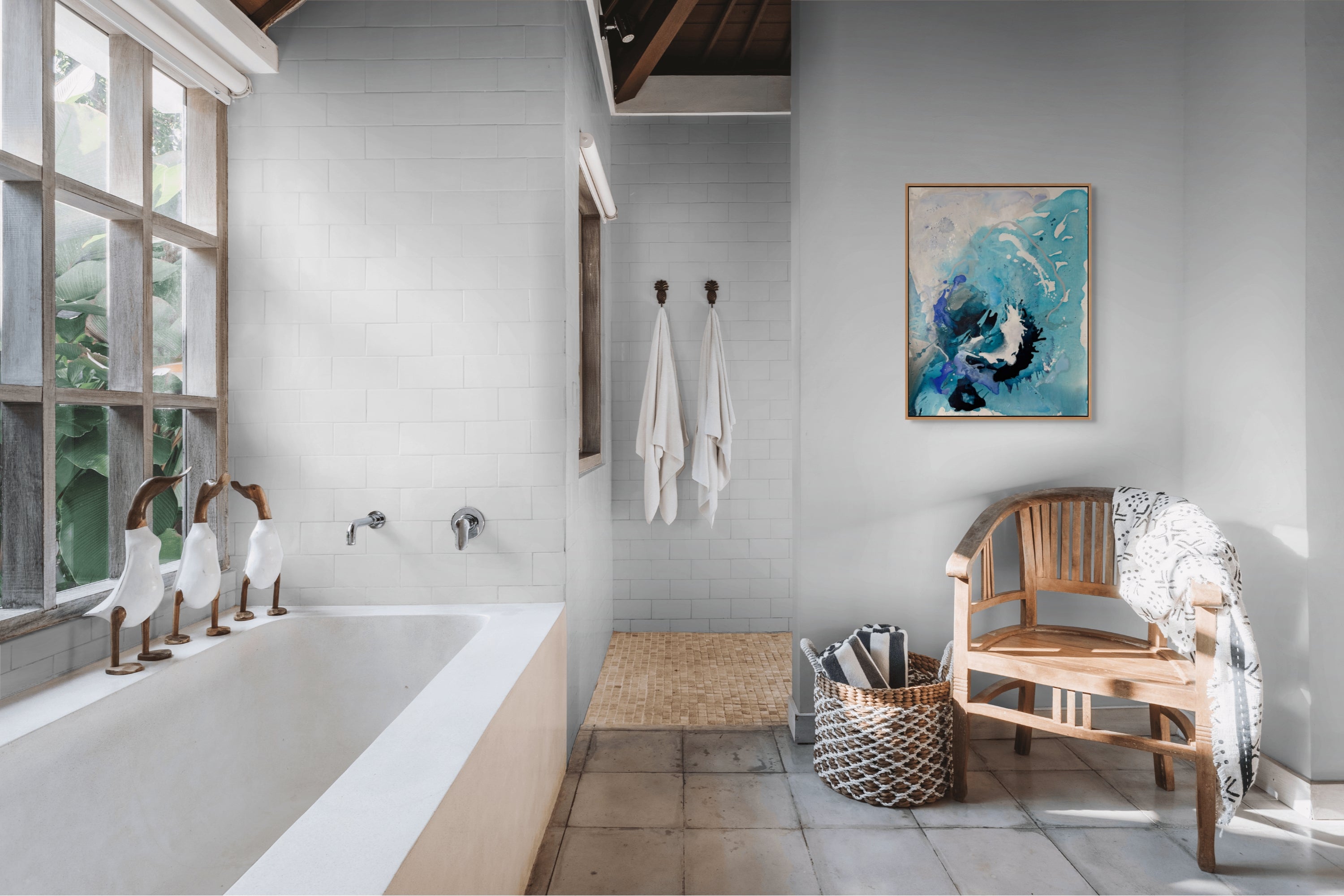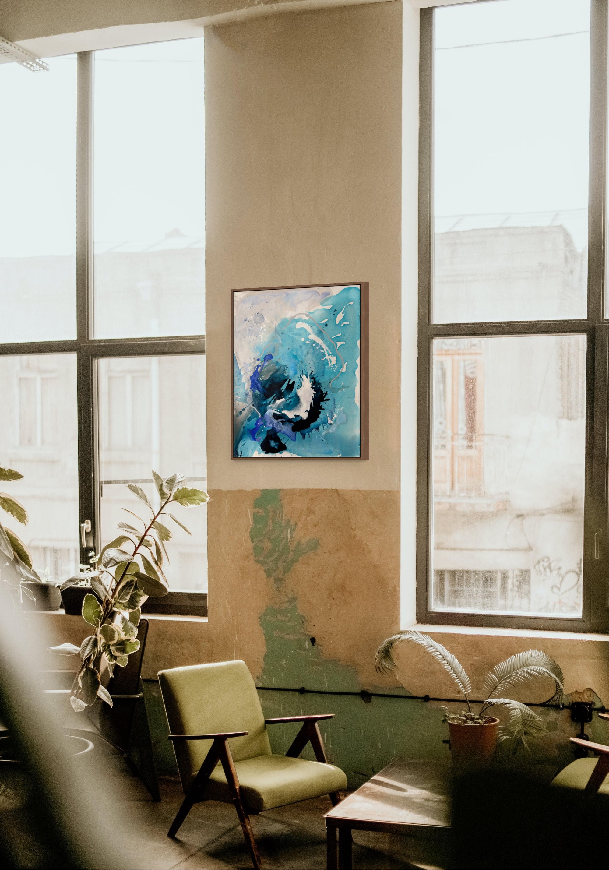Originally from London and now based in Andalusia, her work reflects the warmth and vibrancy of her surroundings and emit a sense of quiet luxury. Mediterranean water, light and atmosphere infuse her palette — from luminous blues to sunwashed corals — creating compositions that feel both energetic and harmonious. At its heart, her practice celebrates freedom, play, and intuition — an invitation to experience colour not just as something seen, but as something felt.